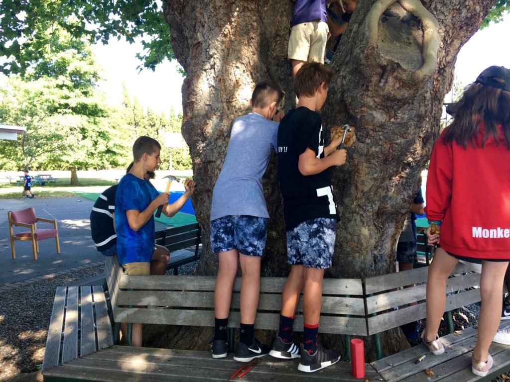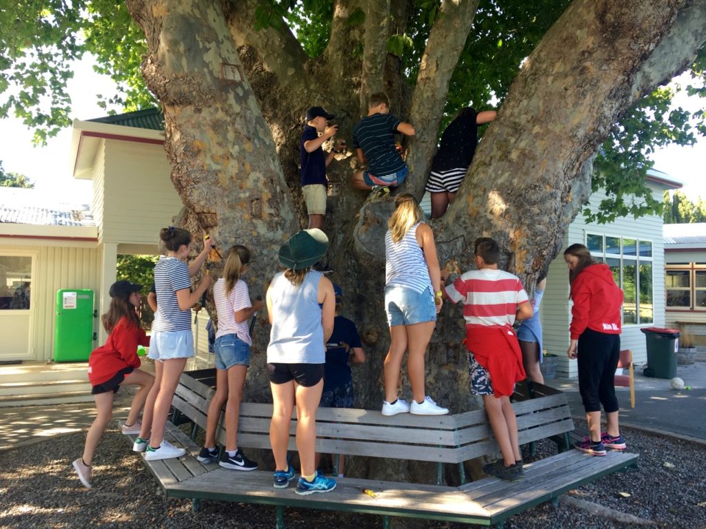 Our Y8 students are hard at work leaving their final memory in the school’s Plane Tree. This is one of Rapaura School’s fine traditions where Y8 students carve their initials as a memento of their special time with us.