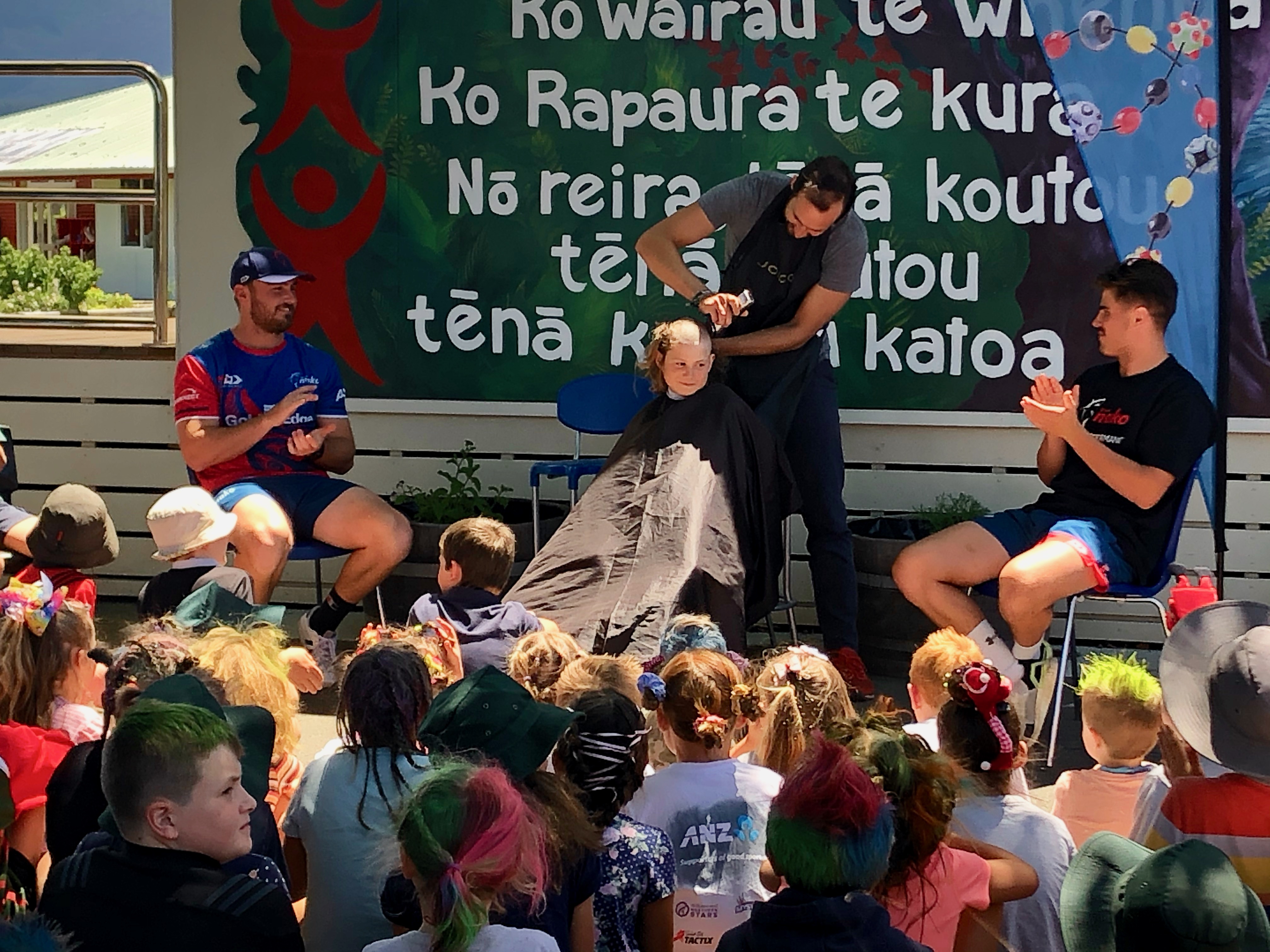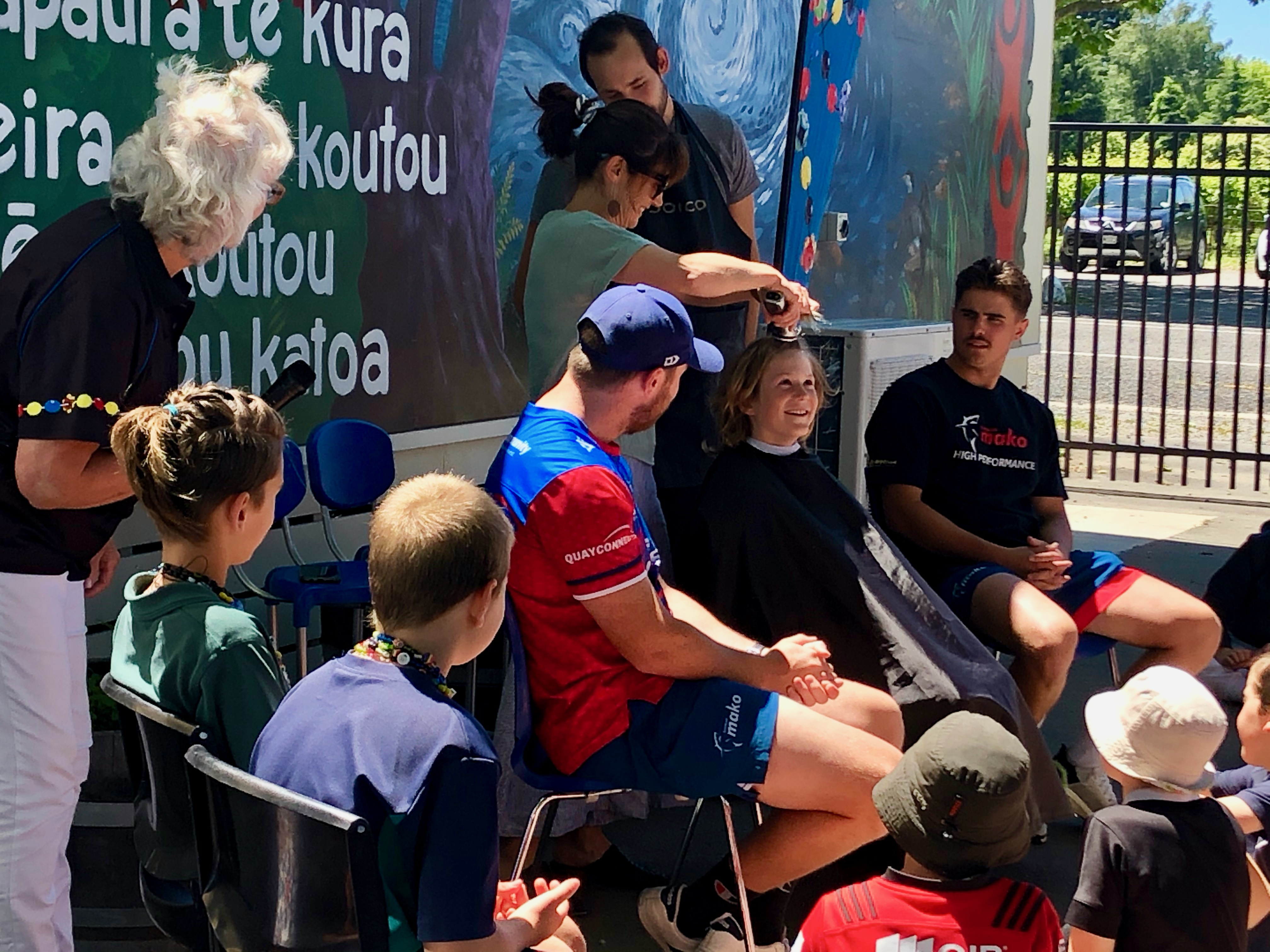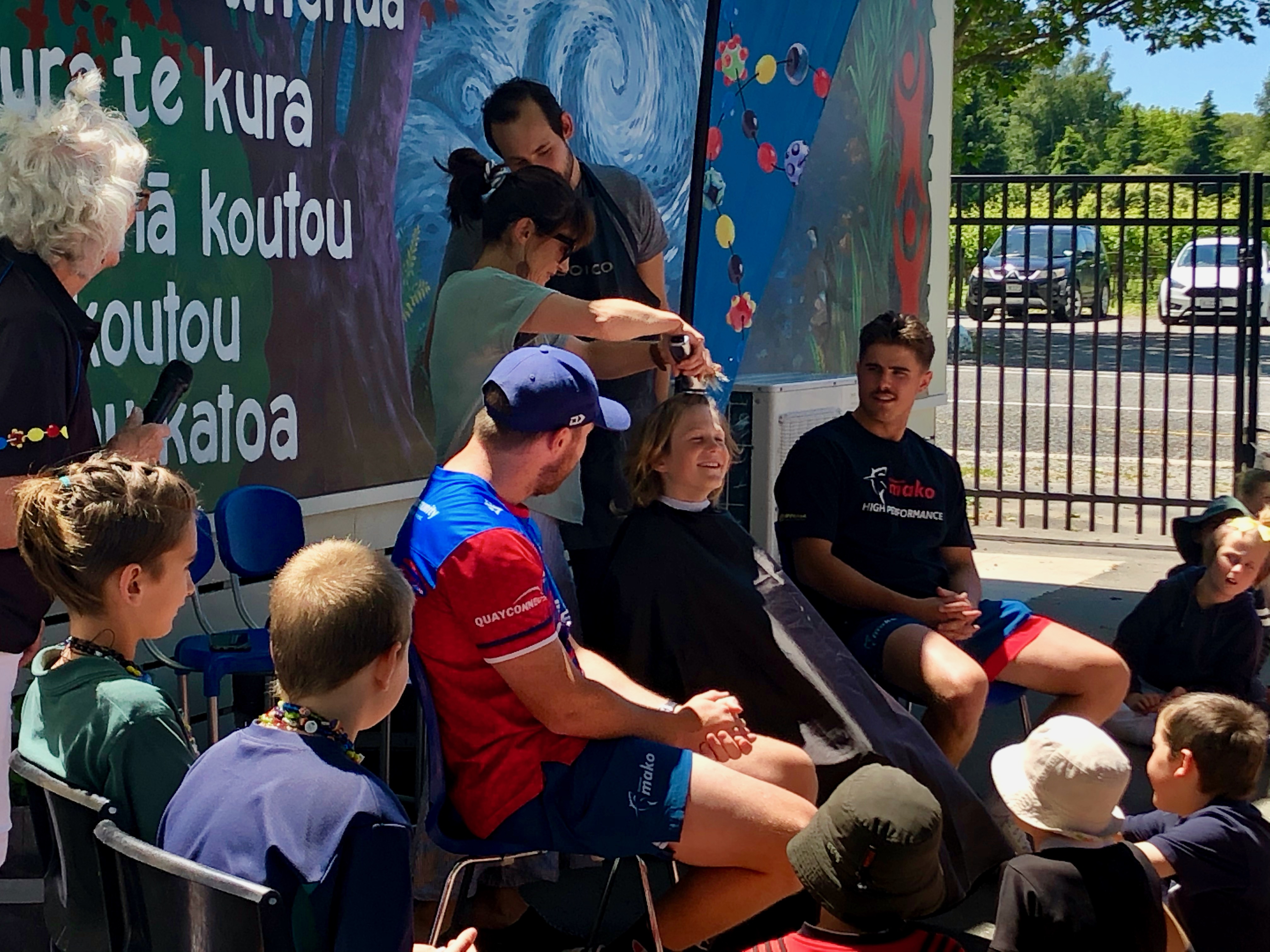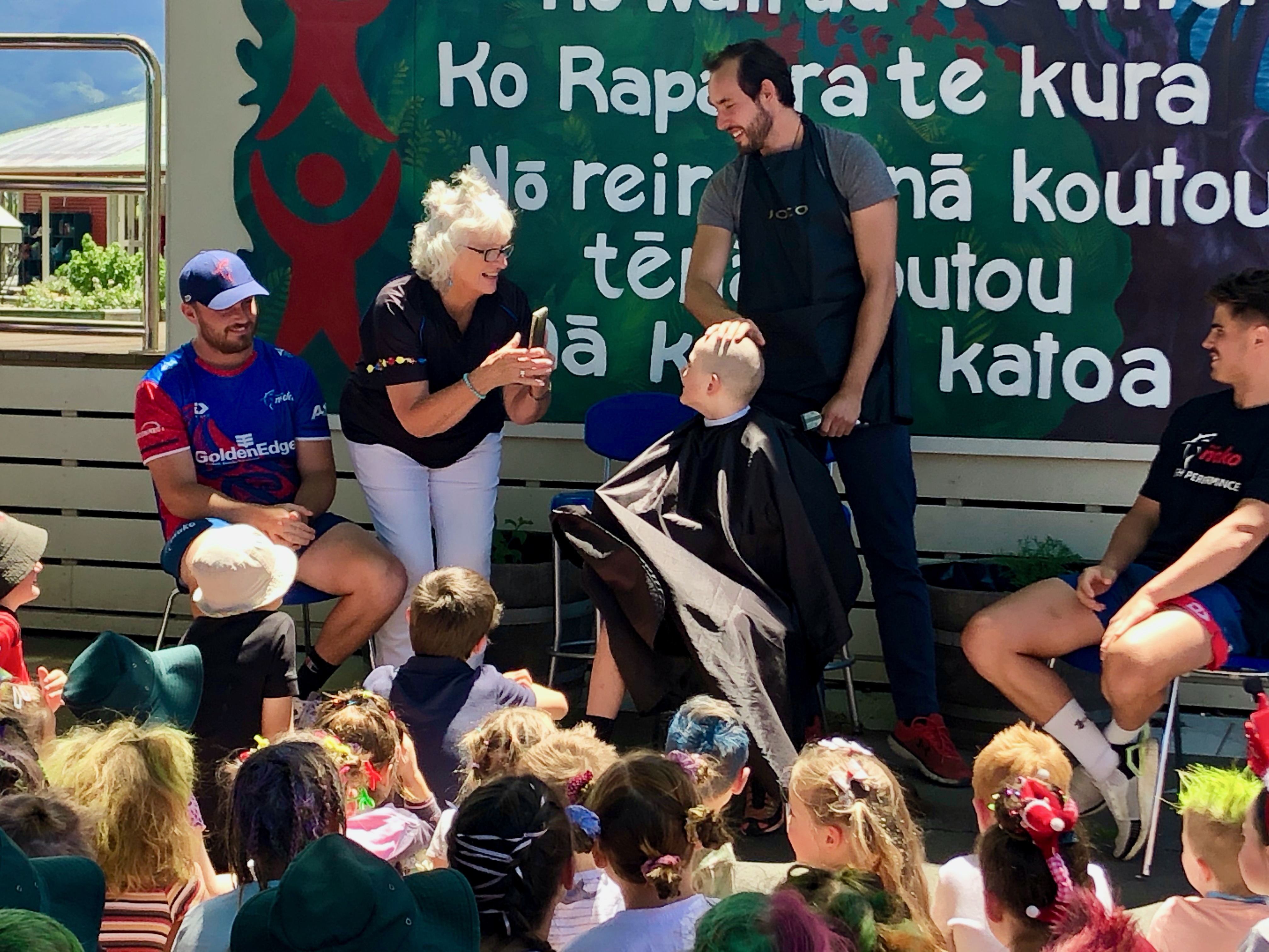 Two of the Tasman Mako team members helped with shaving Gus’s hair and the finishing touches was completed by Vincent from iHair, who is the Matheson’s hair dresser.
