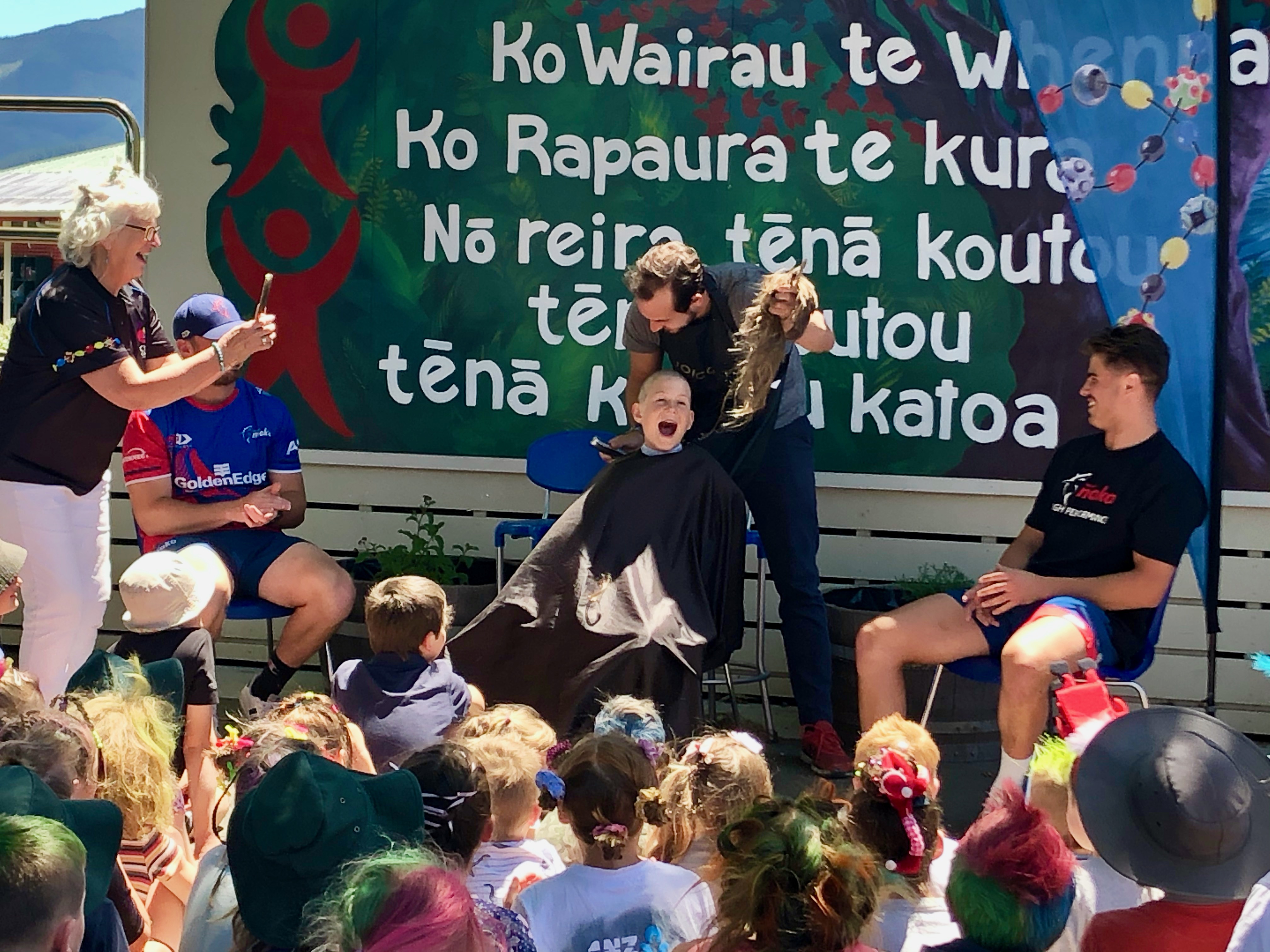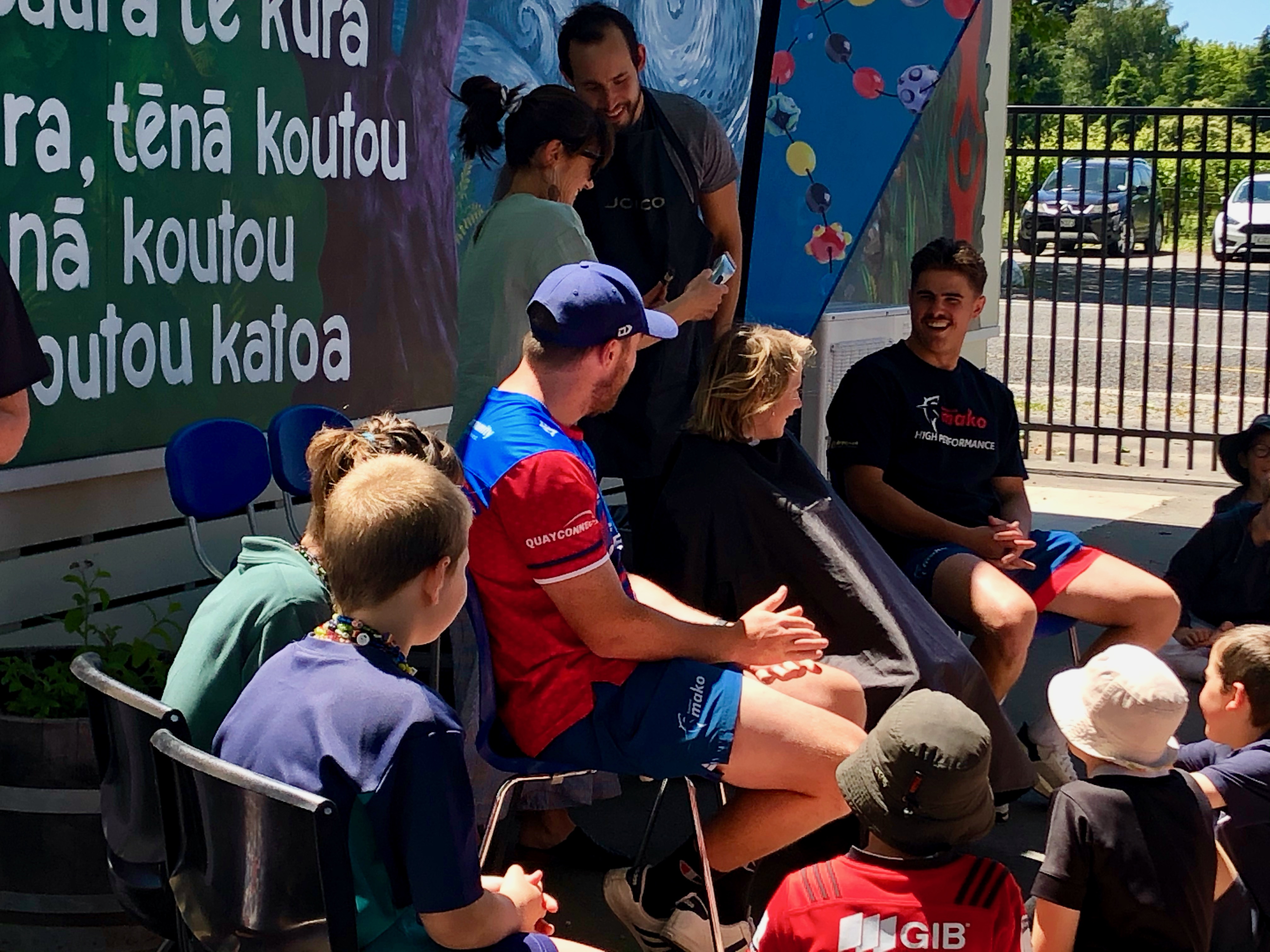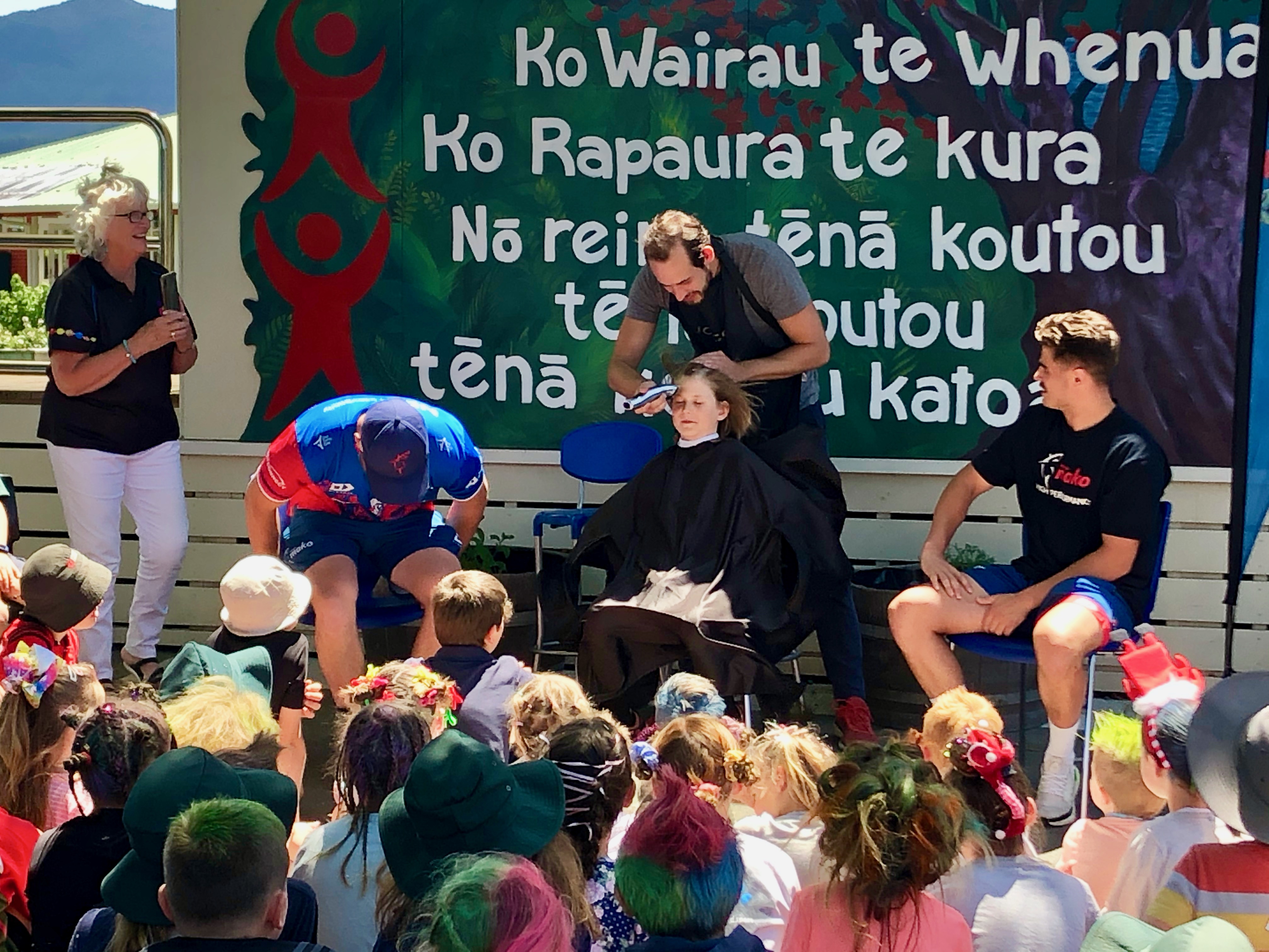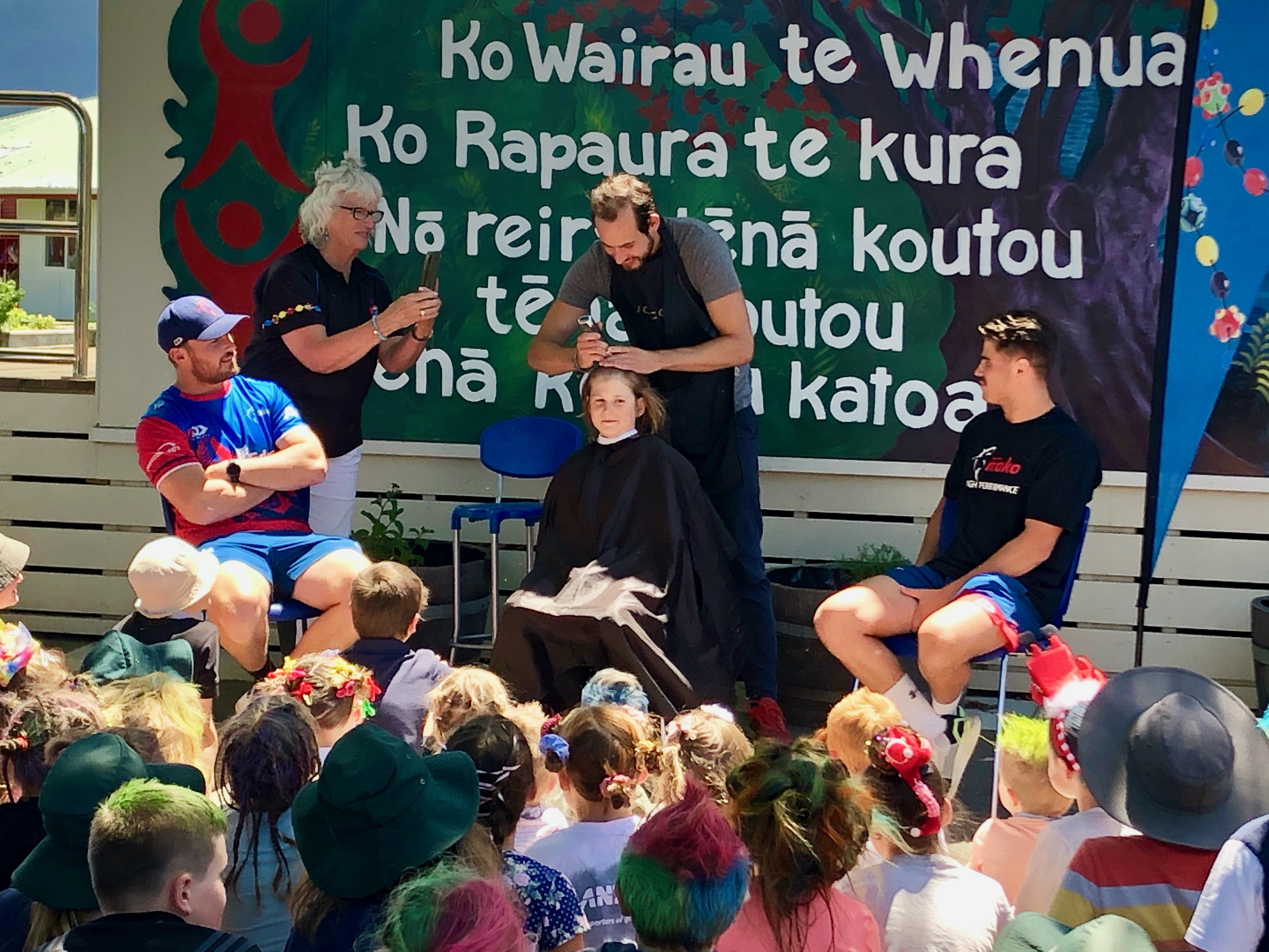 Two of the Tasman Mako team members helped with shaving Gus’s hair and the finishing touches was completed by Vincent from iHair, who is the Matheson’s hair dresser.