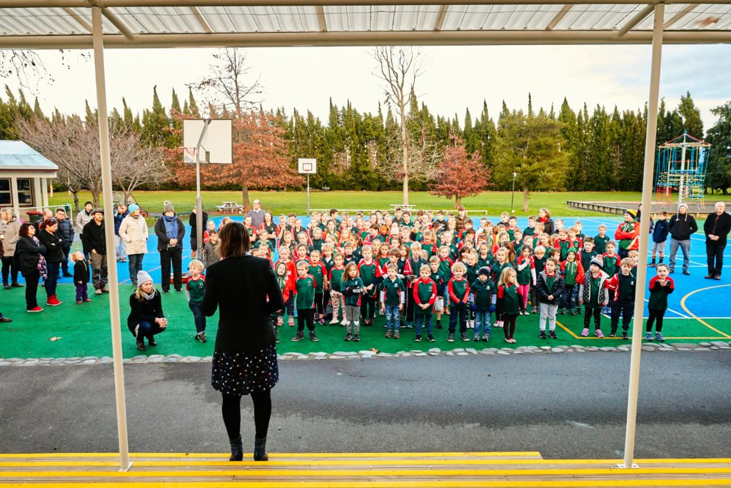 Will S, Prime Minister for Term 2, and Finn M, youngest student, cut the ribbon to allow us all to walk through and enjoy the spaces, colours, lines and furniture which caters for all our tamarki’s social, emotional and physical needs to be the best learners possible.