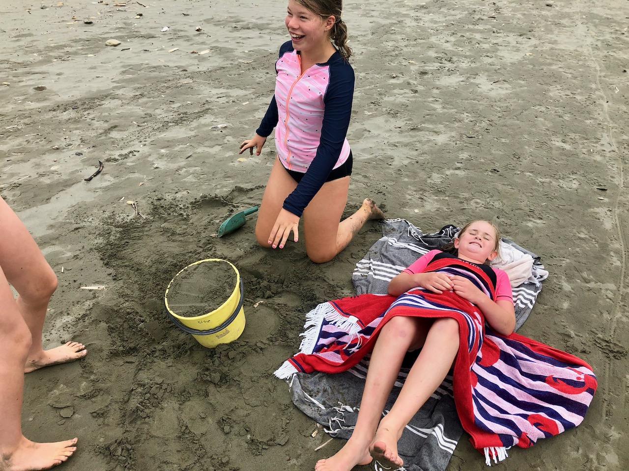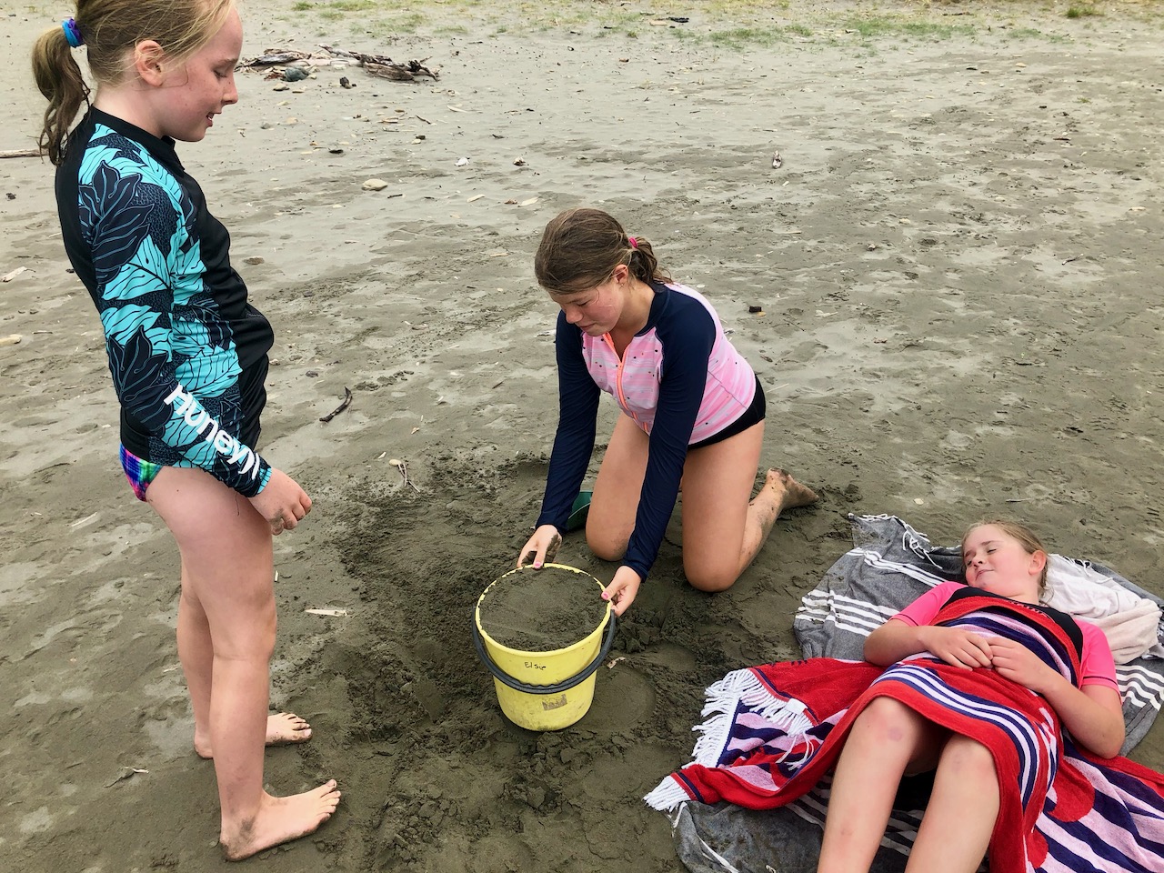 We went back for lunch and then I went swimming. It was cold so I hopped out quickly and got dressed. I went and build sand castles.