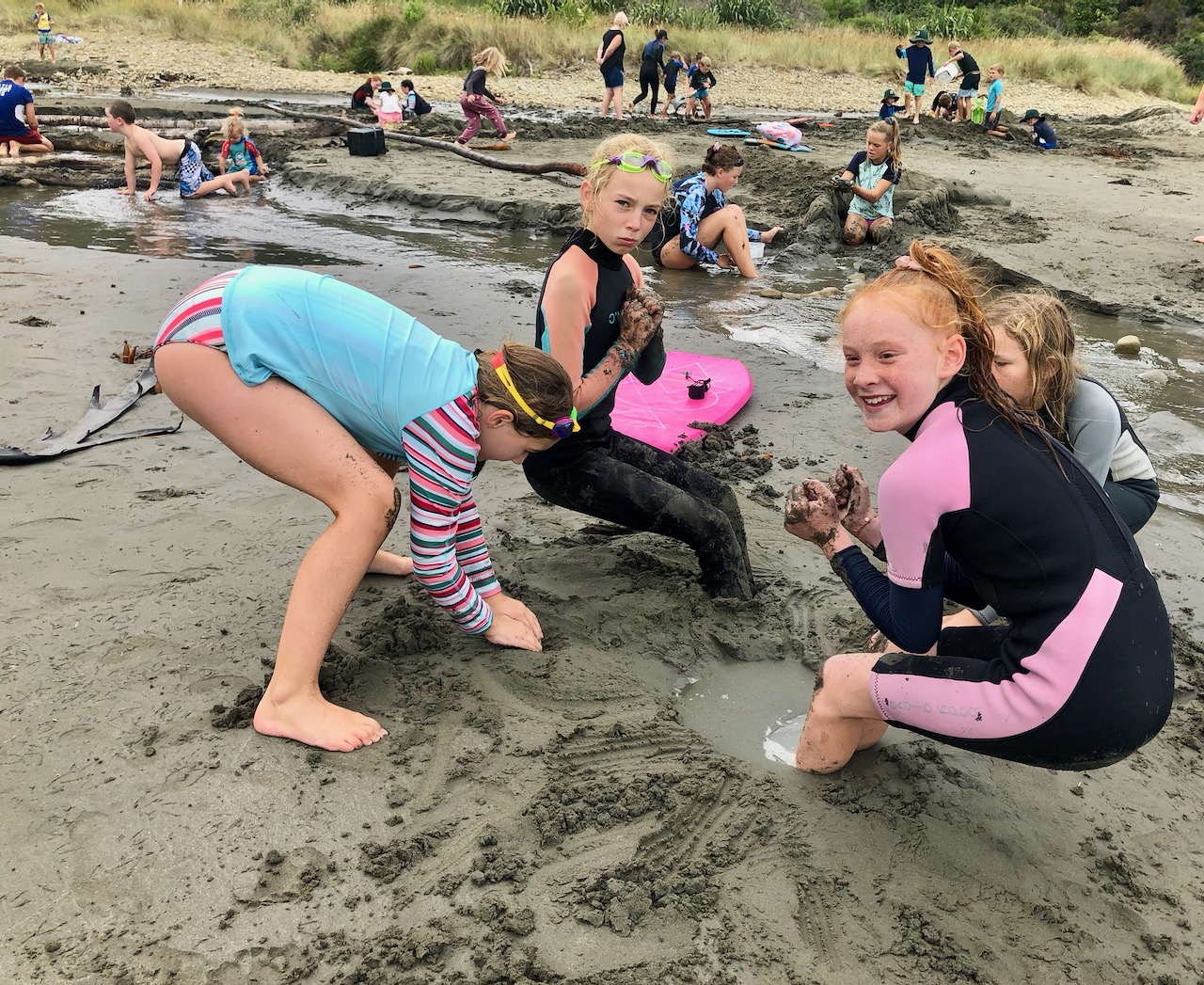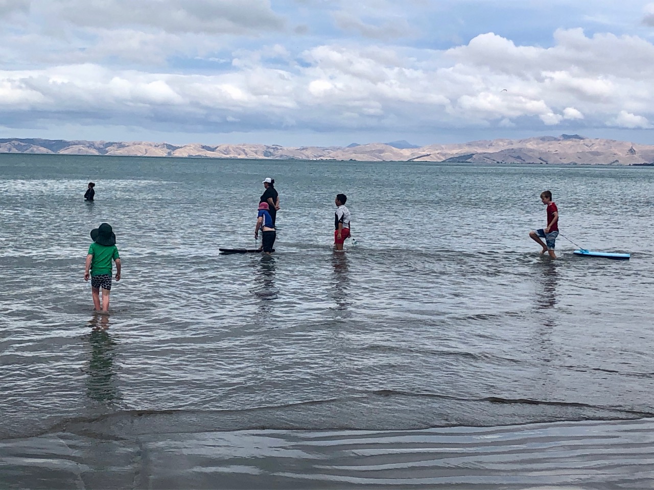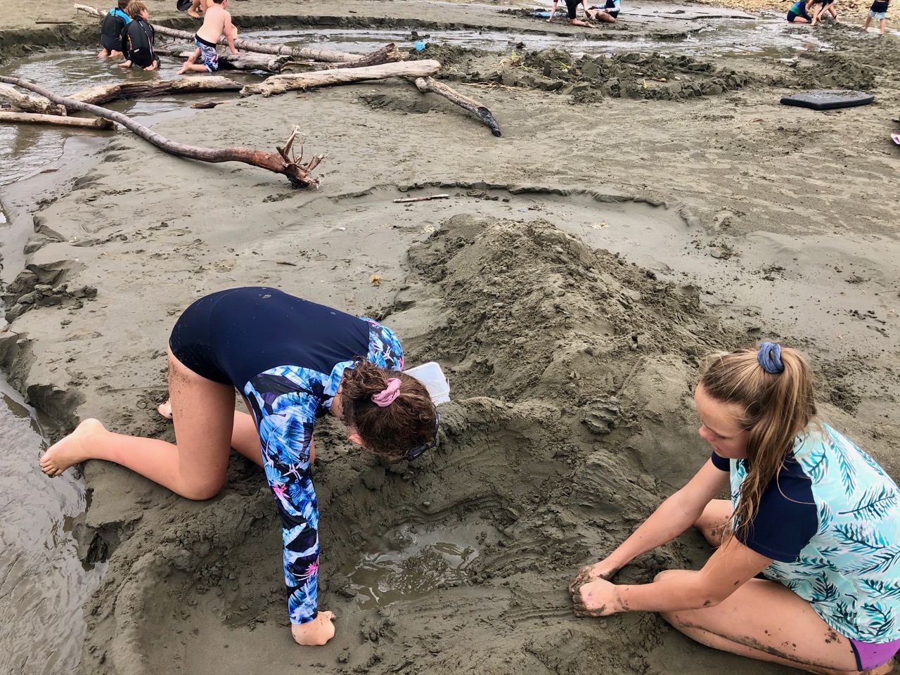 On the way on the windy road, we played Hungry Hippos. Finally we got to Whites Bay, yah. We sat and lay our blanket then went back to the car and got our trolley with our beach stuff in it. Pippa and Lofia sat in the trolley. Phoebe screamed as she saw a big fat bumble bee. Evie, Mia, Ella H and I cried out with laughter. We walked to the rock pools. Finn caught a glass shrimp and two hermit crabs.