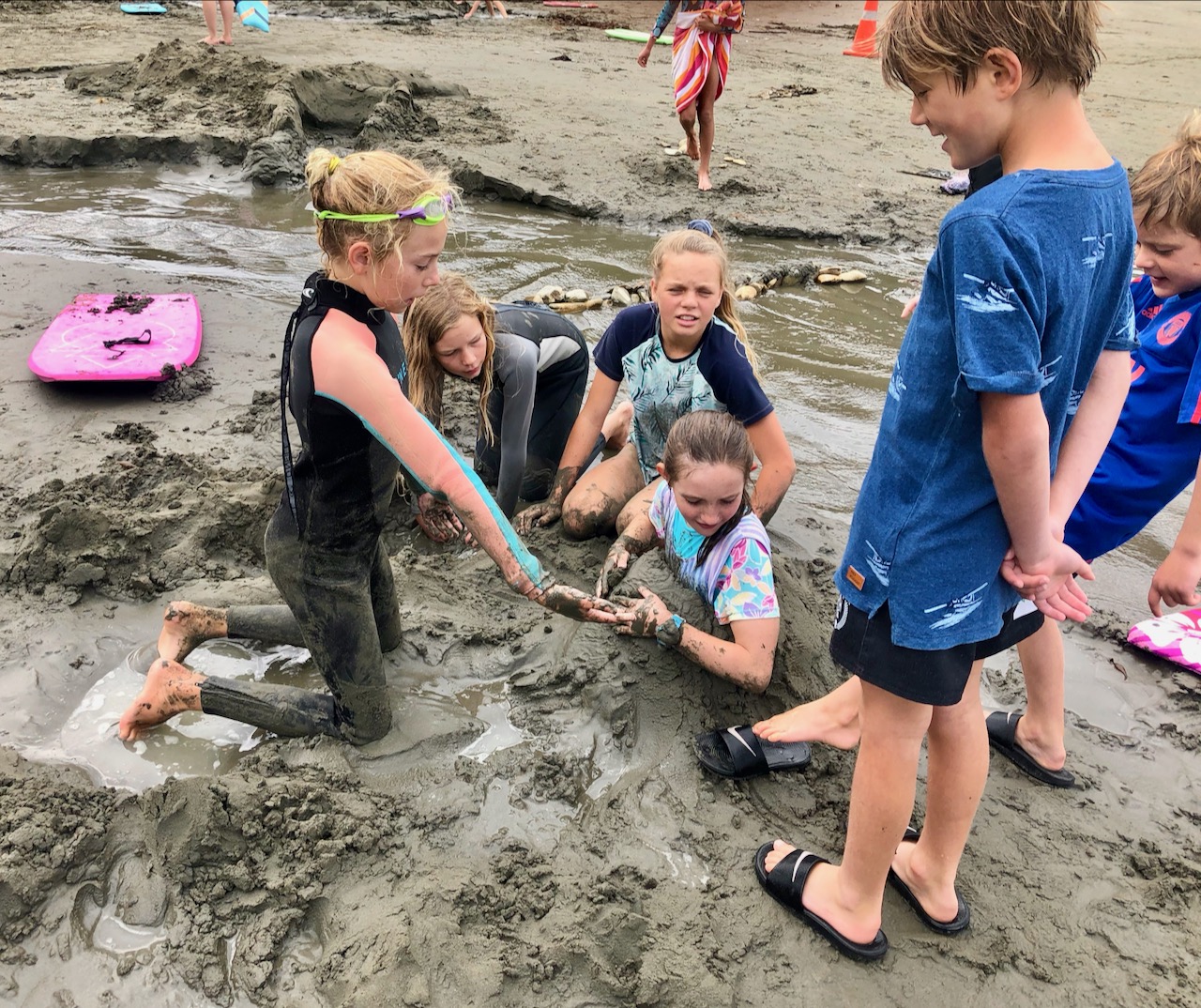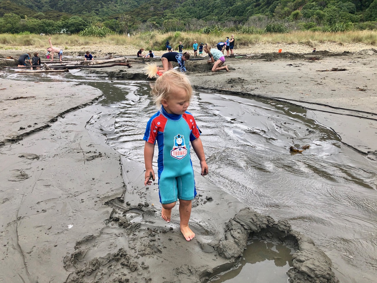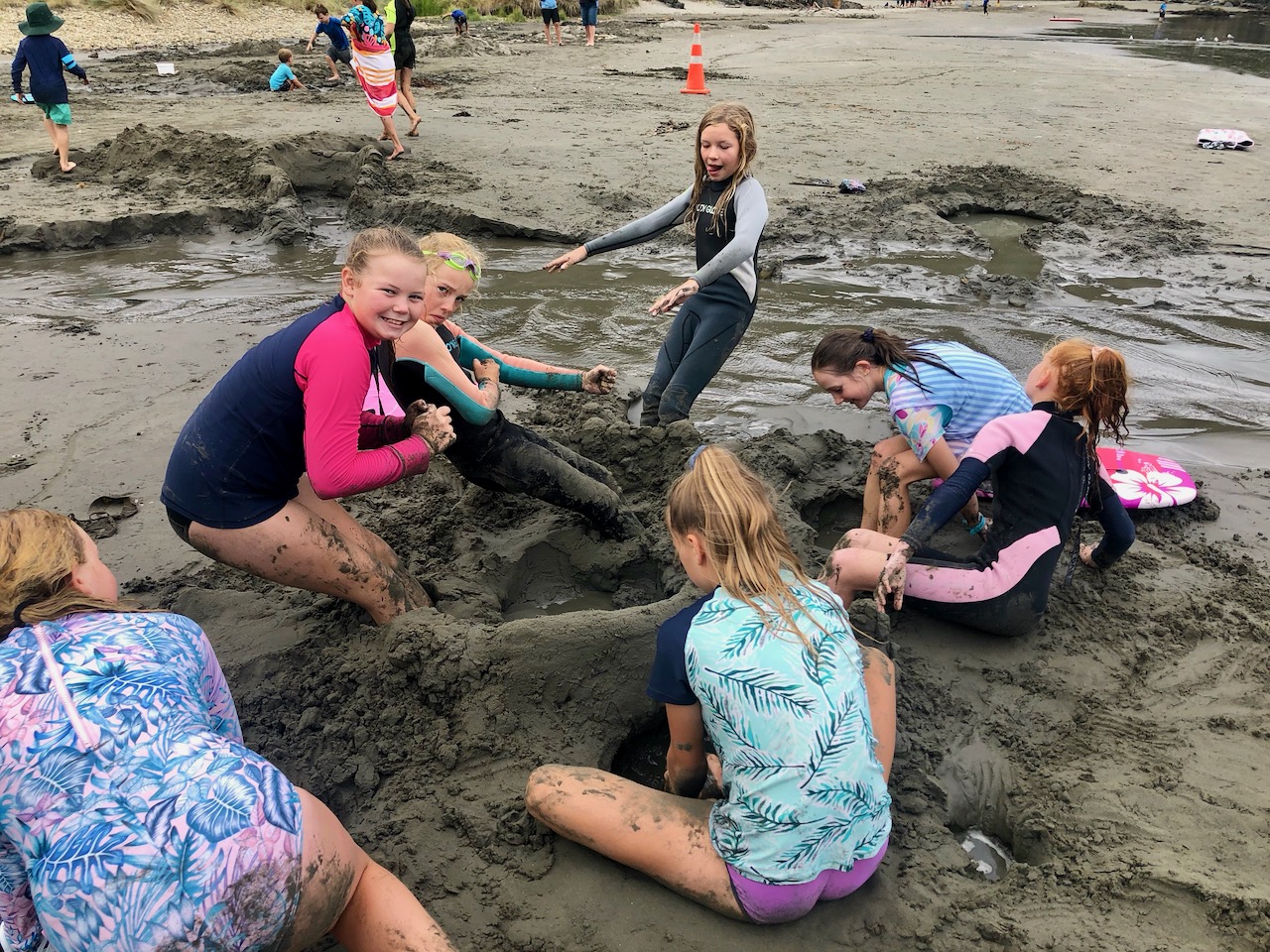 On the way on the windy road, we played Hungry Hippos. Finally we got to Whites Bay, yah. We sat and lay our blanket then went back to the car and got our trolley with our beach stuff in it. Pippa and Lofia sat in the trolley. Phoebe screamed as she saw a big fat bumble bee. Evie, Mia, Ella H and I cried out with laughter. We walked to the rock pools. Finn caught a glass shrimp and two hermit crabs.