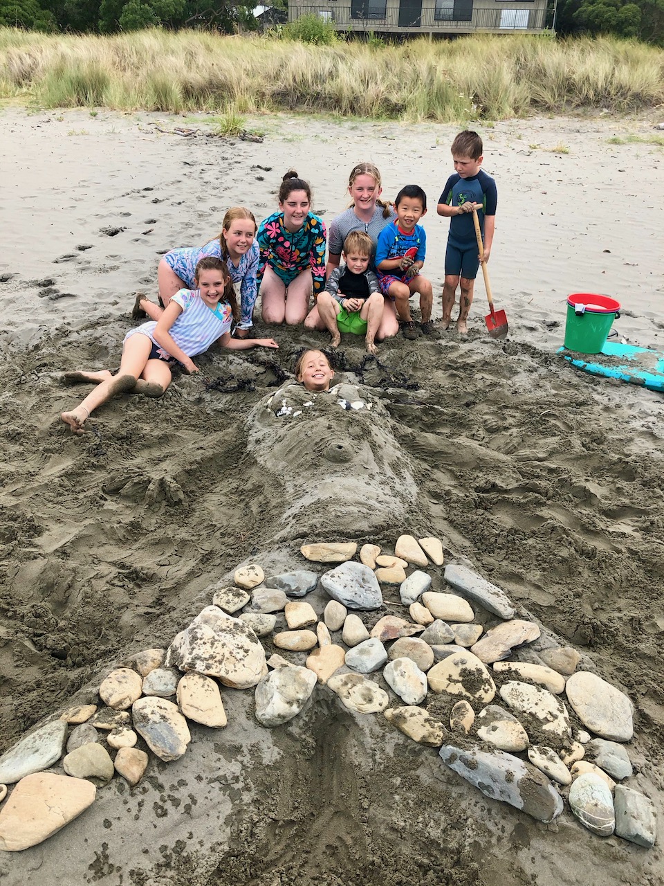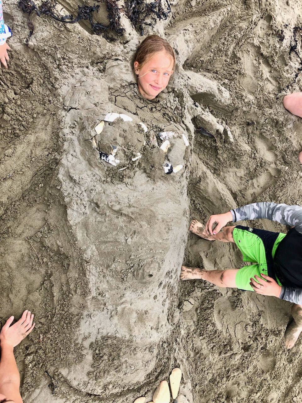 Olivia – I made a sandcastle and put a bug on top.